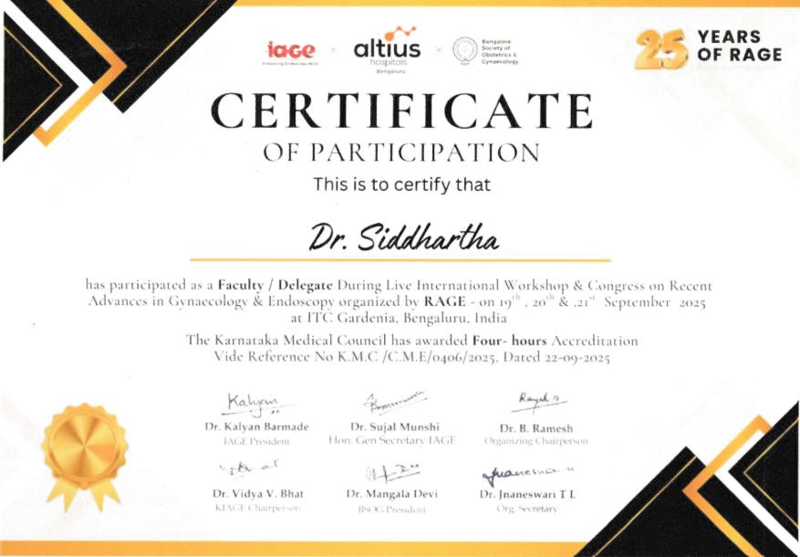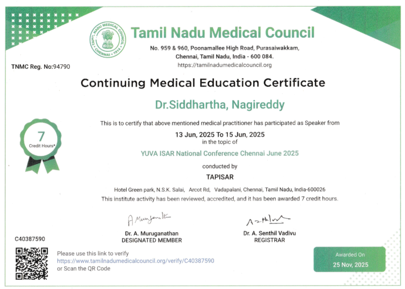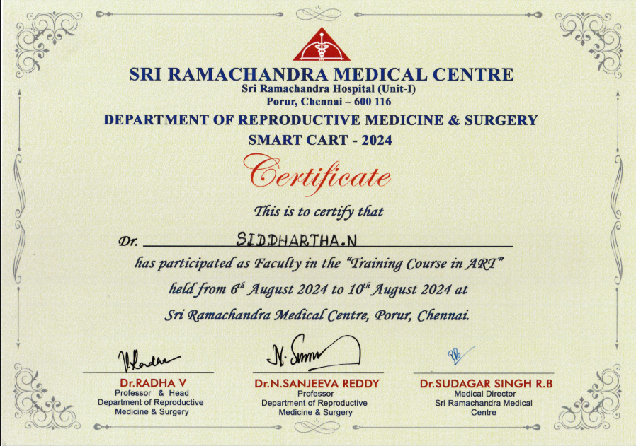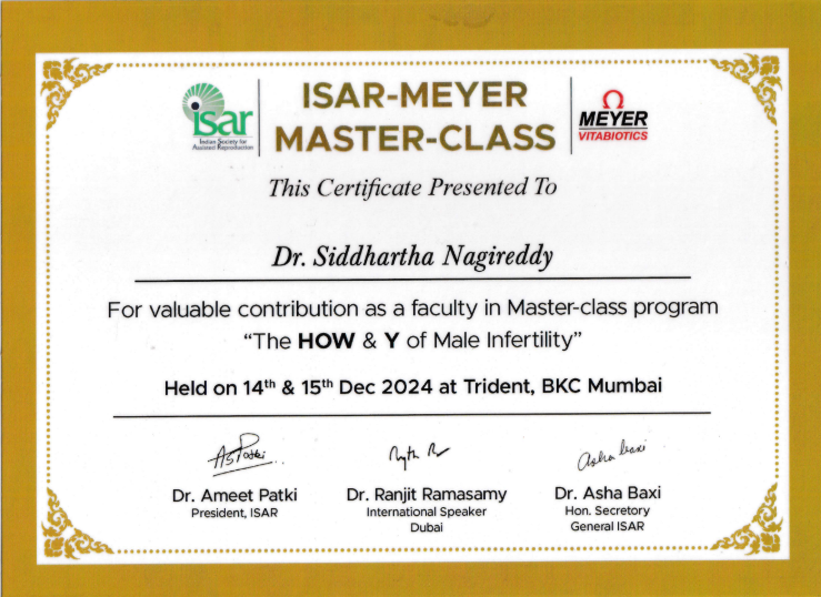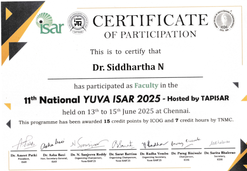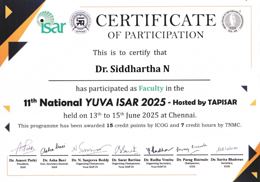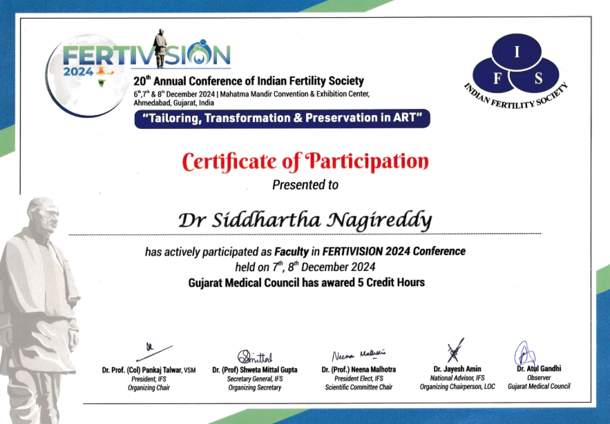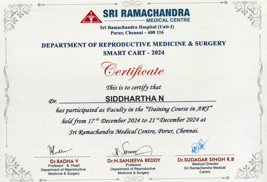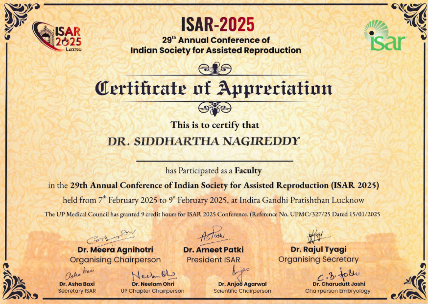 Dr. Siddhartha Nagireddy is a distinguished reproductive endocrinologist and fertility surgeon with deep clinical expertise in IVF, ICSI, IUI, ART procedures, and complex infertility management. He received comprehensive training in obstetrics and gynecology, followed by advanced specialization in reproductive medicine and surgery-the first formal sub-specialty program of its kind in India.