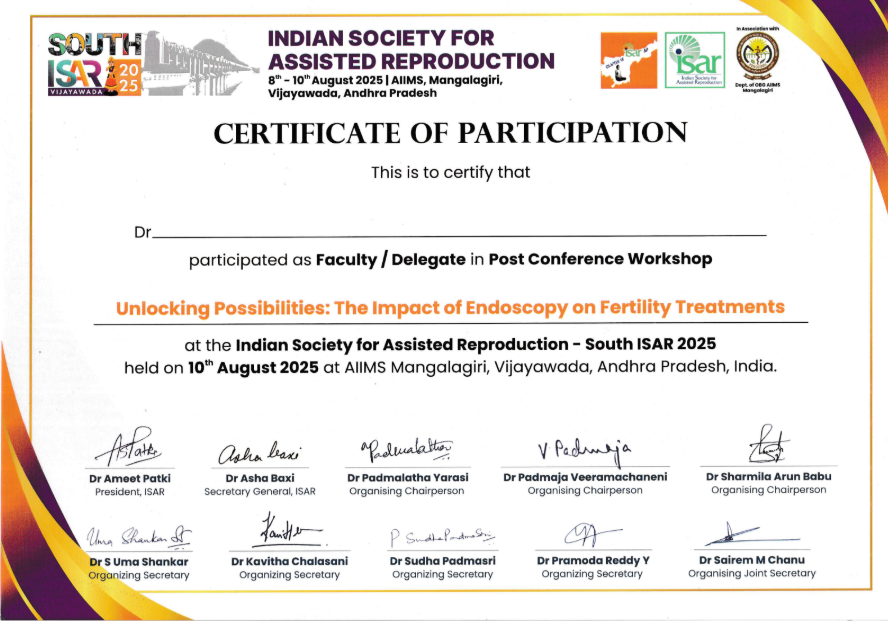 » Among the first physicians in India to formally qualify in Reproductive Endocrinology & Infertility, providing comprehensive care for complex fertility conditions.